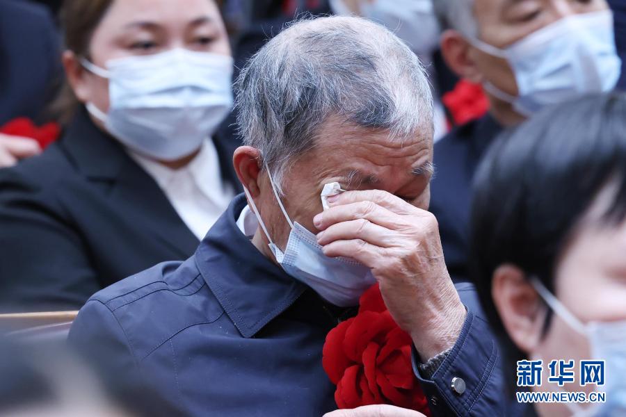 2月25日,全國脫貧攻堅總結表彰大會在北京人民大會堂隆重舉行。會上,“全國脫貧攻堅楷?!秉S文秀的父親黃忠杰替女兒戴上了大紅花,并灑下淚水。黃文秀生前為廣西壯族自治區百色市委宣傳部派駐樂業縣新化鎮百坭村駐村第一書記,2019年6月17日犧牲在脫貧攻堅一線,獻出了年僅30歲的寶貴生命。新華社記者 劉彬 攝