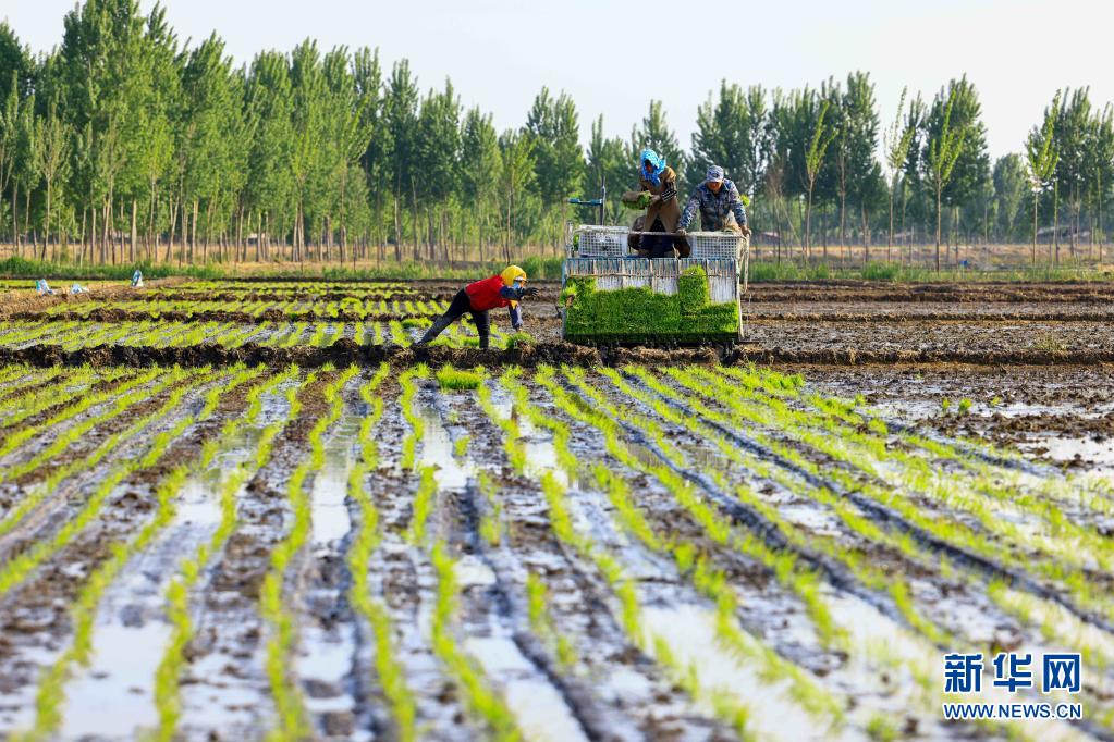 日前,冀東地區水稻插秧工作全面開啟,河北省唐山市豐南區的農民搶抓農時灌田插秧,田間呈現出一派繁忙景象。