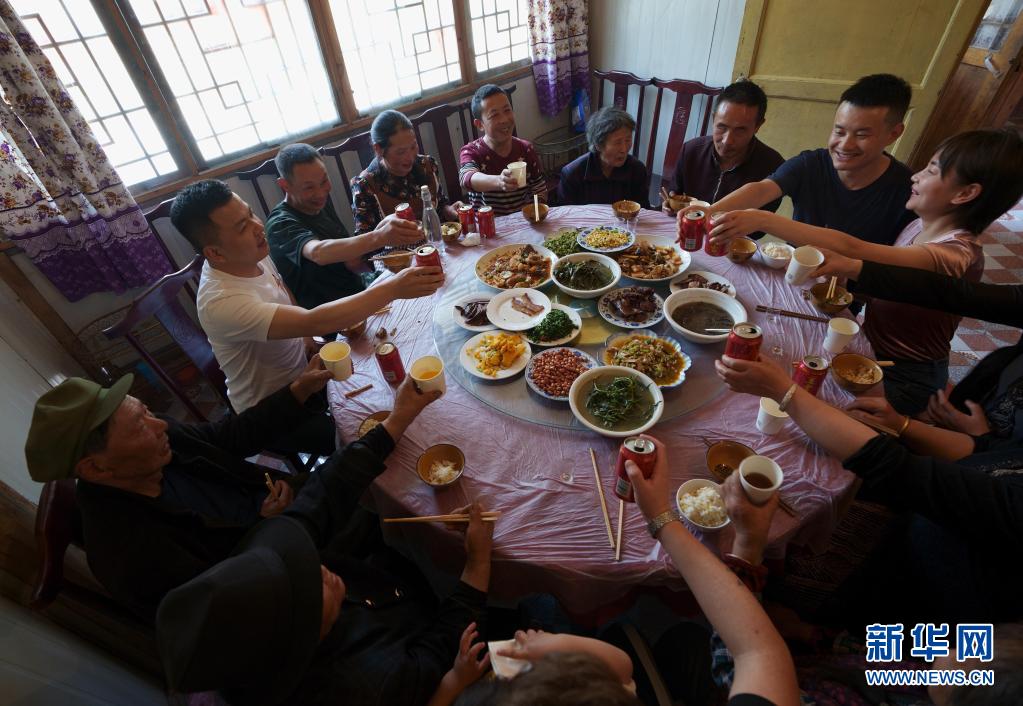 5月4日,林興聰、李蕓香一家團聚在一起吃午飯。 新華社記者 江宏景 攝