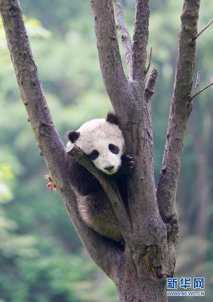 這是5月15日在中國大熊貓保護研究中心雅安碧峰峽基地拍攝的大熊貓。
