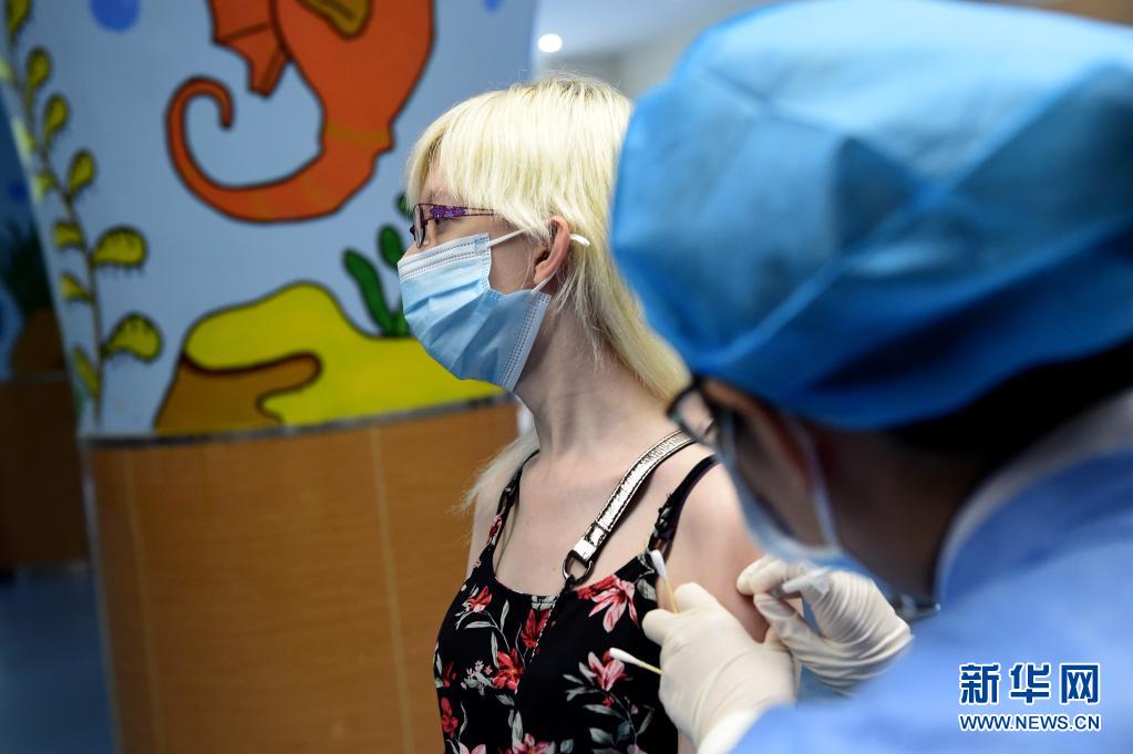 2021年5月12日,在合肥市一處新冠疫苗接種點,醫(yī)務(wù)人員為外籍人士接種疫苗。新華社記者 黃博涵 攝