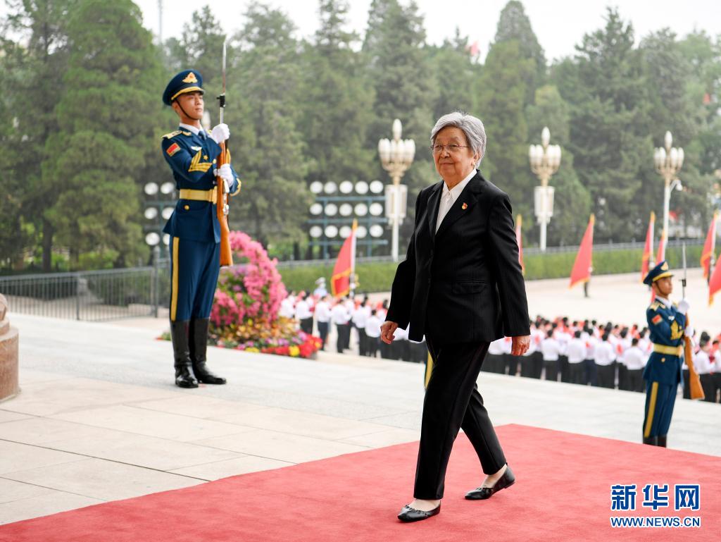這是黃寶妹抵達(dá)人民大會(huì)堂。