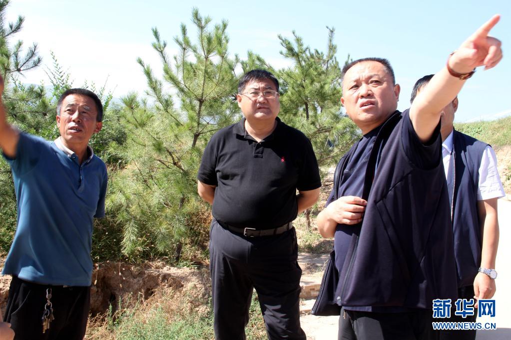 劉偉(左二)在太谷區西曲河旱垣溫室調研(2020年9月6日攝)。新華社發