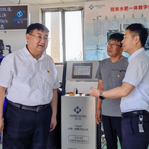 6月23日,劉偉(左一)在太谷區閆村科芯園區水肥一體化車間調研。新華社發