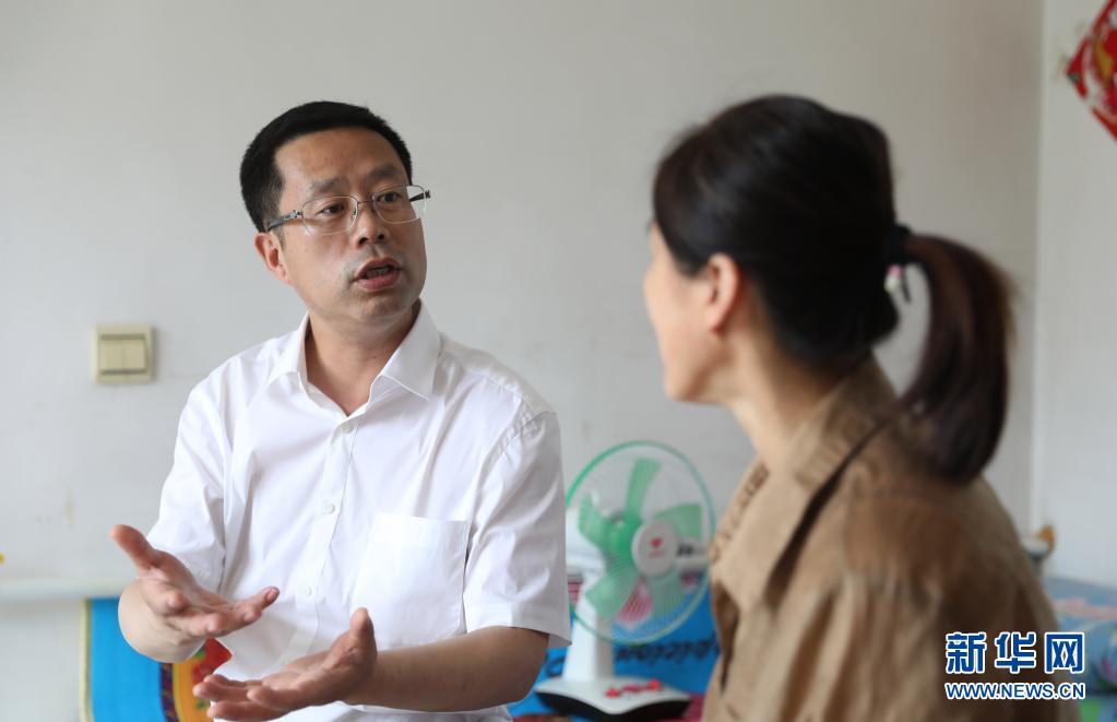 7月2日,在沈陽市沈北新區興隆臺街道單家村,聞然(左)與村民交談。新華社記者 楊青 攝