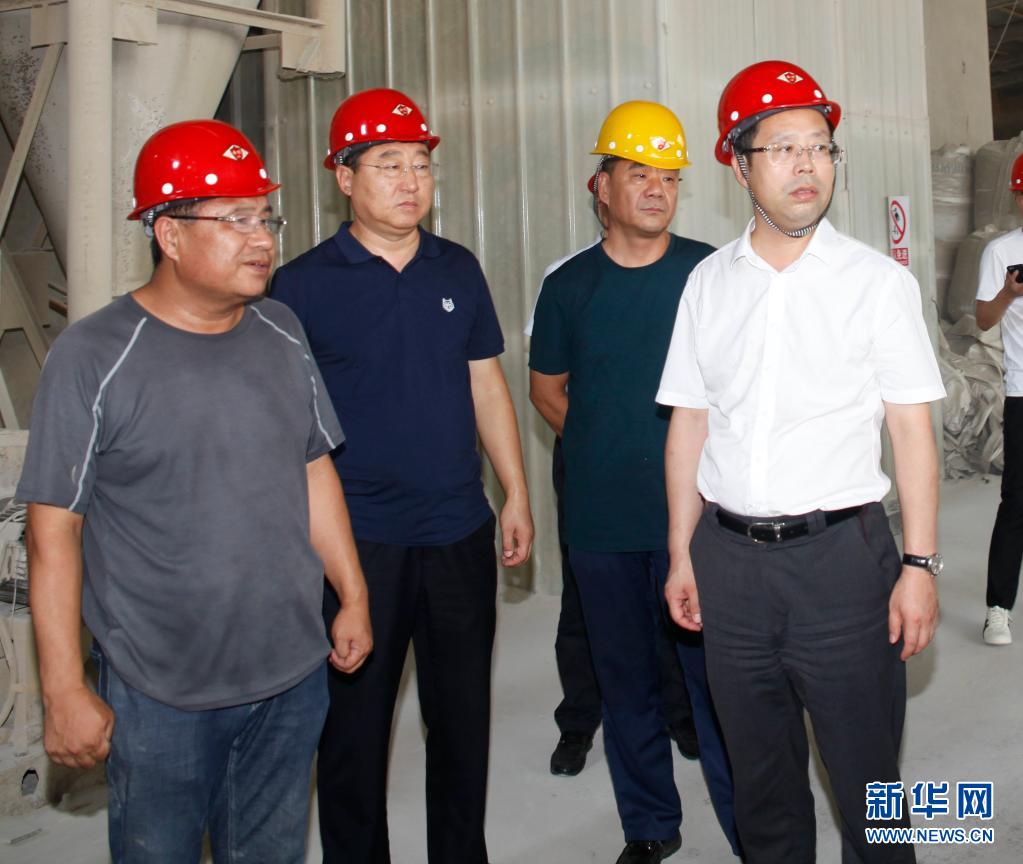 2018年8月4日,時任海城市委書記聞然(右一)在調研菱鎂產業發展情況。新華社發