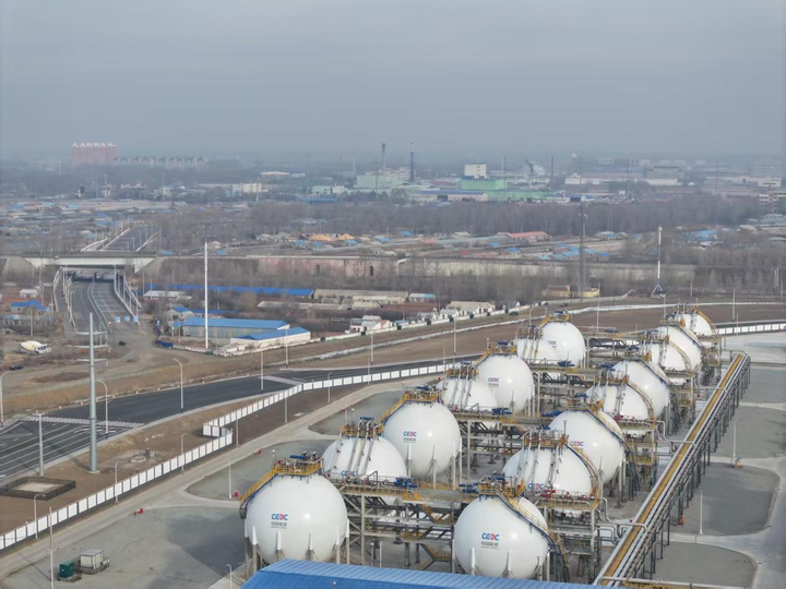 图为中能建松原氢能产业园项目的氢储罐。新华每日电讯记者 姚湜摄