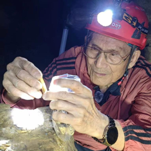 他的研究从古人类延伸到大熊猫、剑齿象等古生物。2025年底,他在重庆一处溶洞调查熊猫化石,狭窄洞穴中,匍匐前行了三个小时。这段视频在电视台播出的时候,黄老笑言,“93岁,要当39岁来过。”——巧的是,39岁那一年也是他的收获之年,他在陕西发现了“长武智人”。