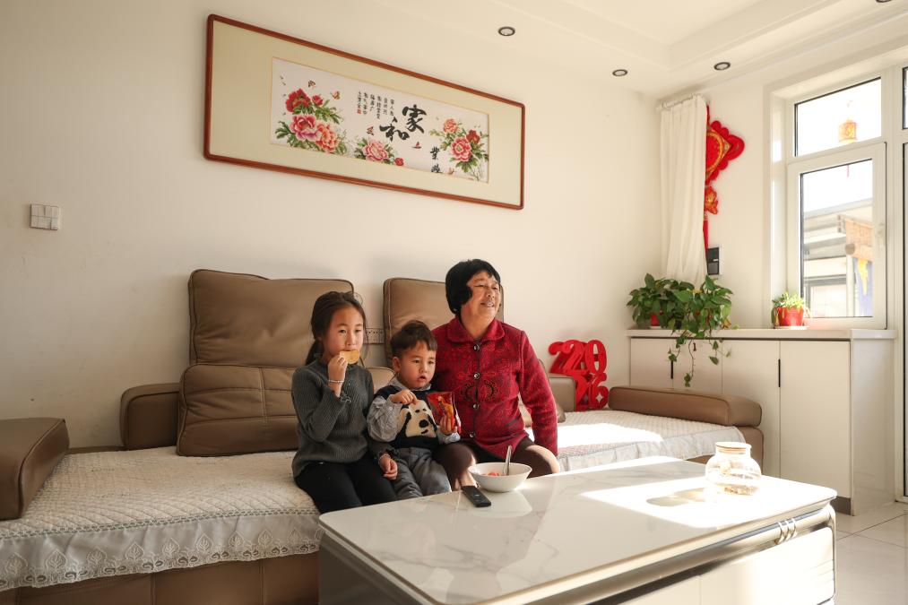 查恩英和孙子、孙女在家中休息。新华社记者 潘昱龙 摄