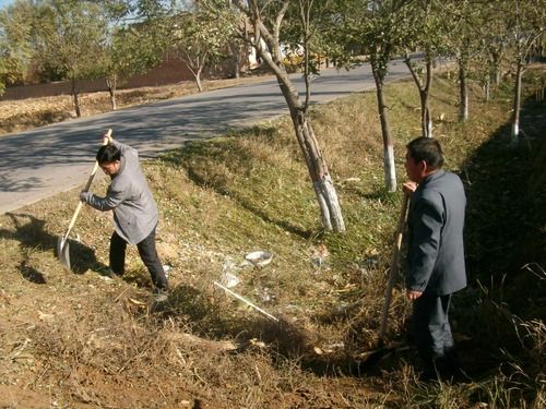 李进祯(左一)生前带领村民对乡村环境综合整治(资料图片)。新华社发