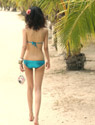 黃圣依赤腳漫步沙灘 飄逸白裙詮釋清新之美