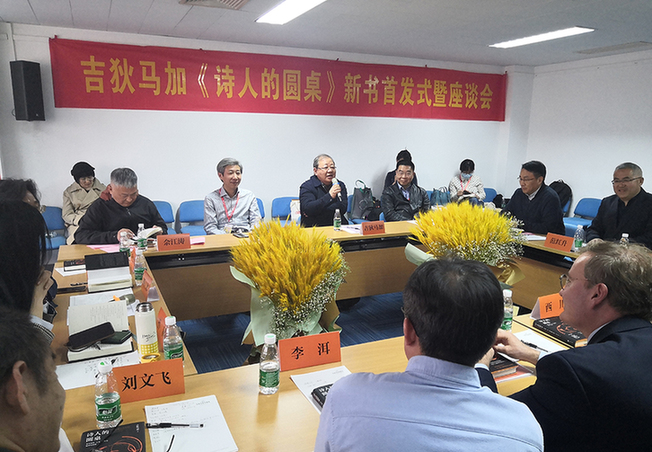 其后,吉狄馬加同李洱、高明、高興、西川、樹才、劉文飛等嘉賓展開對話。嘉賓們談到在中外詩歌交流日益頻繁的情況下,聚焦中外詩歌并以此展開的對話交流圖書仍是鮮少見到,并稱《詩人的圓桌》的出版算是對這種缺憾的一個彌補。在當下的中外詩歌交流過程中,隨著我國影響力的提升,使中國文學“走出去”有了底氣。除此之外,他們還談到詩歌的創作、閱讀、選擇、接受,對話等內容,話題廣泛,又有深入的理論思辨。