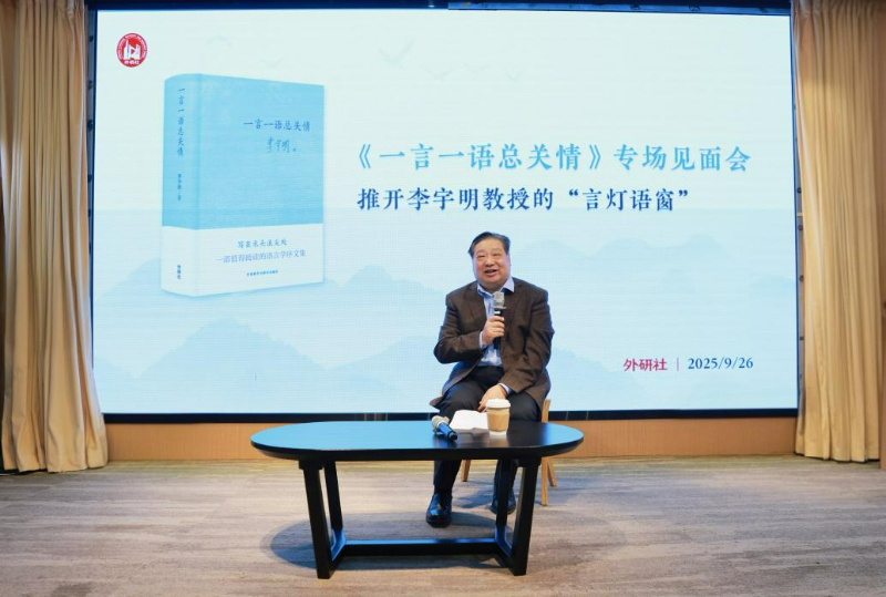 主题分享环节,李宇明首先向支持《一言一语总关情》的读者,以及出版本书并再次搭建交流桥梁的外语教学与研究出版社表达感谢。随后,他围绕《一言一语总关情》的成书历程,向现场读者分享书中序言背后与学界师友、后辈的温情故事:陈章太、邢福义、陆俭明等学界前辈为其作序,饱含对后辈的学术关怀;李宇明为于根元、周清海、田小琳、周庆生等师辈作序,这种突破“尊者作序”传统的背后,体现的是珍贵的学术民主精神;为学生作序,既是对师生携手共研的记录,更是教学相长的暖心见证;坚持为语言生活绿皮书等作序二十载,记录语言生活发展之路;为其他学者作序,则成为李宇明开阔眼界、碰撞思想的宝贵机会。李宇明表示,这本书不仅是自己学术情谊的缩影,也是他品读学界著作后的心得凝结,他愿将这份真挚与收获,与每一位读者共享。