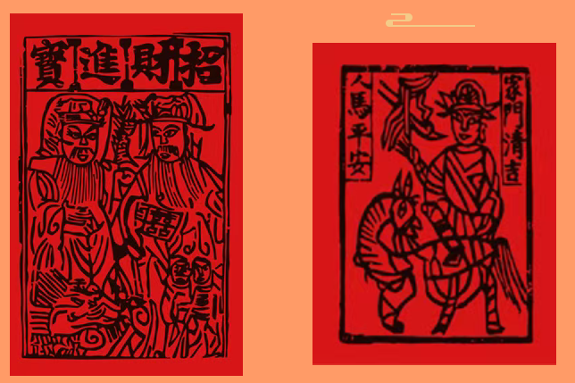 门神形象设计借自清代陕西凤翔“马上秦琼尉迟恭”年画原版(现藏于重庆中国三峡博物馆),武将骑马,英姿勃发,更添“一马当先”的守护之力。