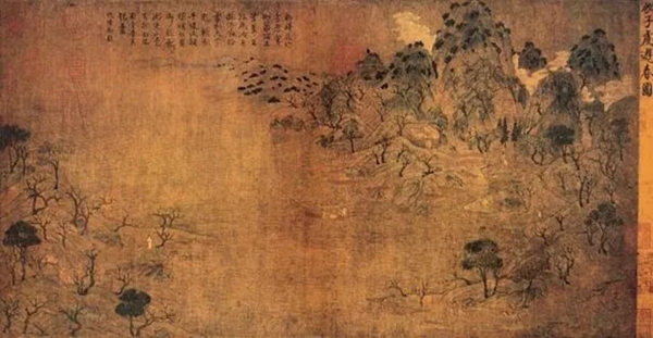 青綠山水主要使用石青、石綠、赭石三種顏色,源自于各種礦物質原石。石青、石綠色階豐富而經久不褪,色澤鮮麗卻并不浮艷,呈于絹上,顯出一片綠郁蔥蔥、蒼翠欲滴之感。