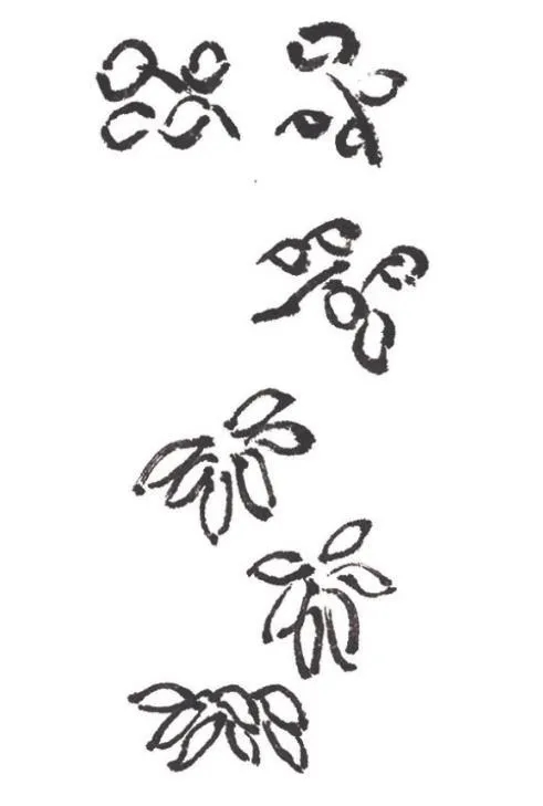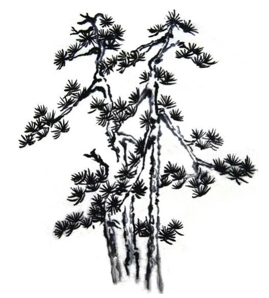 夾葉法:以雙鉤法為之,是以各種樹葉的生長結構和形態加以概括出來的表現程式。