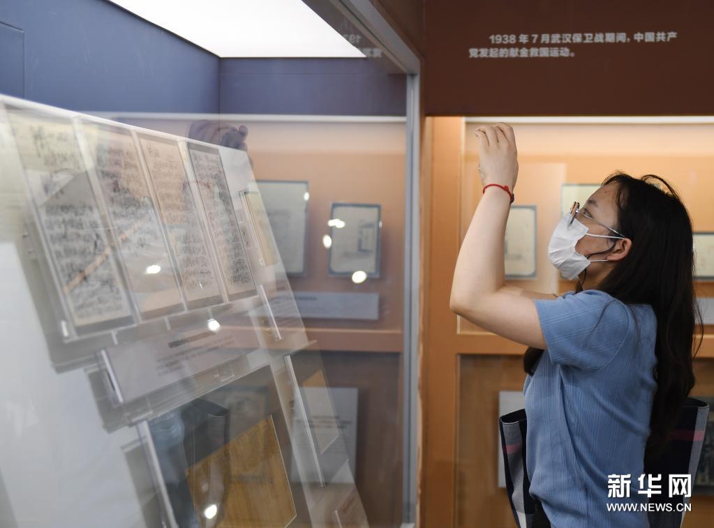 7月7日,觀眾在中國人民抗日戰爭紀念館參觀“中流砥柱——中國共產黨抗戰文物專題展”。新華社記者 張晨霖 攝