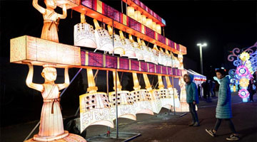 2月9日,在孔子博物馆举行的山东文物精品展上,参观者在观看五莲县博物馆收藏的龙山文化玉璇玑。