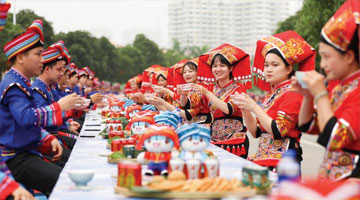 4月22日,市民在“换书大集”上挑选完图书后准备拿到图书馆阅读。
