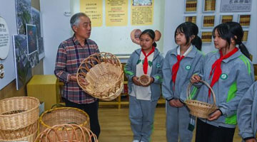 5月11日,学员在位于敦煌市的莫高里工匠村用天然矿石制作颜料。