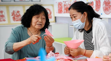 拼版照片:左图为彩陶软儿梨雪糕(5月18日摄);右图为甘肃省博物馆展出的人头形器口彩陶瓶(5月18日摄)。