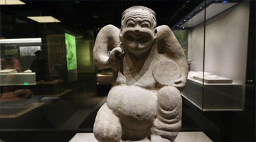 成果展上展出的湖北省文物考古研究院藏龙山时代陶塑人像(7月12日摄)。