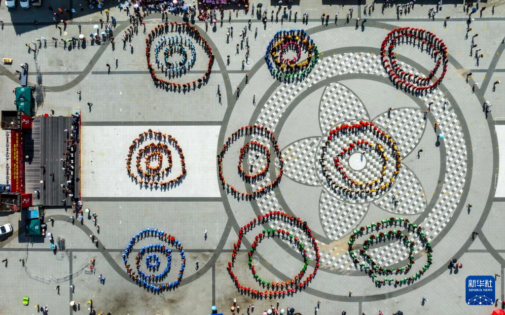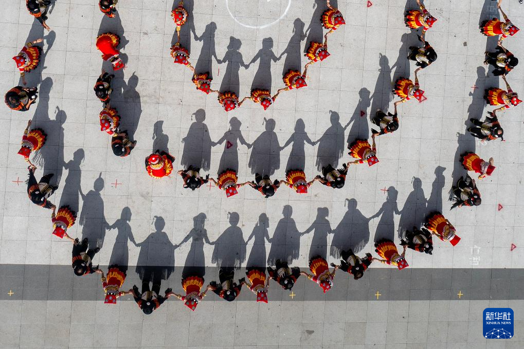 8月10日,群众在贵州省毕节市百里杜鹃管理区鹏程街道进行“乌蒙欢歌”广场舞比赛(无人机照片)。