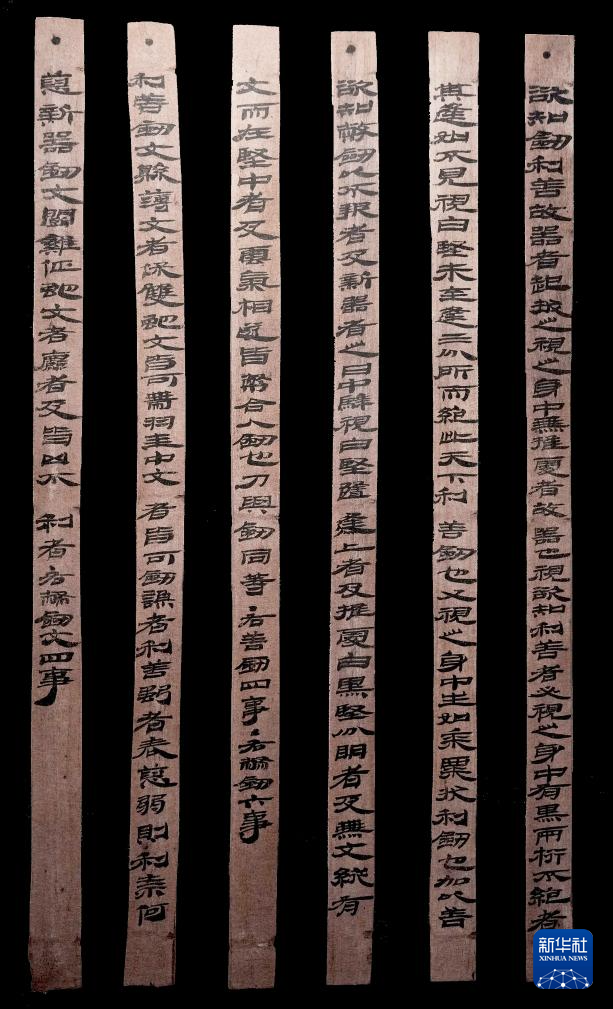 汉简《相利善弊剑册》。此简在书法上有很高造诣,内容主要是辨识宝剑的标准和方法,为后人留下鉴定刀剑的重要知识与技术指导。