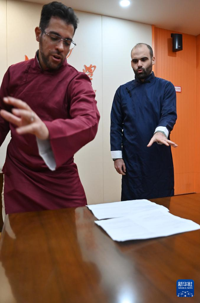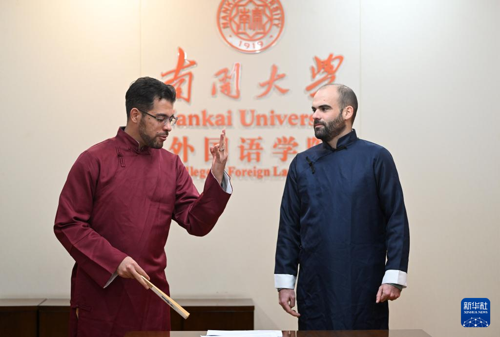 一把折扇、两袭长衫,辅以略显夸张的肢体动作和表情……在南开大学外国语学院的教室里,两位“老外”用西班牙语说起了相声,并依托学校平台对外传播。