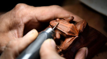 12月12日,游客在长春冰雪新天地一处雪雕前拍照。