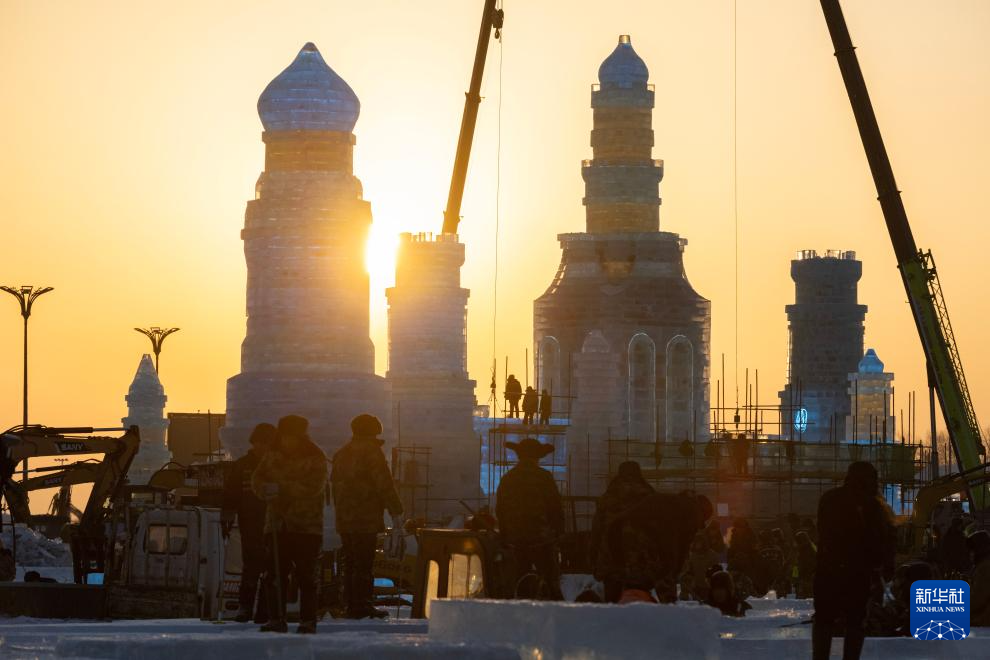 以“龙腾冰雪 逐梦亚冬”为主题的第二十五届哈尔滨冰雪大世界将于12月18日开园迎客。目前在园区内,林立的塔吊、穿梭的机械交织成一首忙碌的建设“交响曲”。本届哈尔滨冰雪大世界将使用25万立方米的冰和雪,倾力打造一个梦幻精彩的冰雪童话世界。