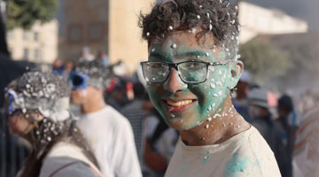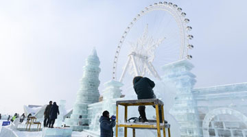 1月6日,游客在浚县古城的土圆粮仓内游览。