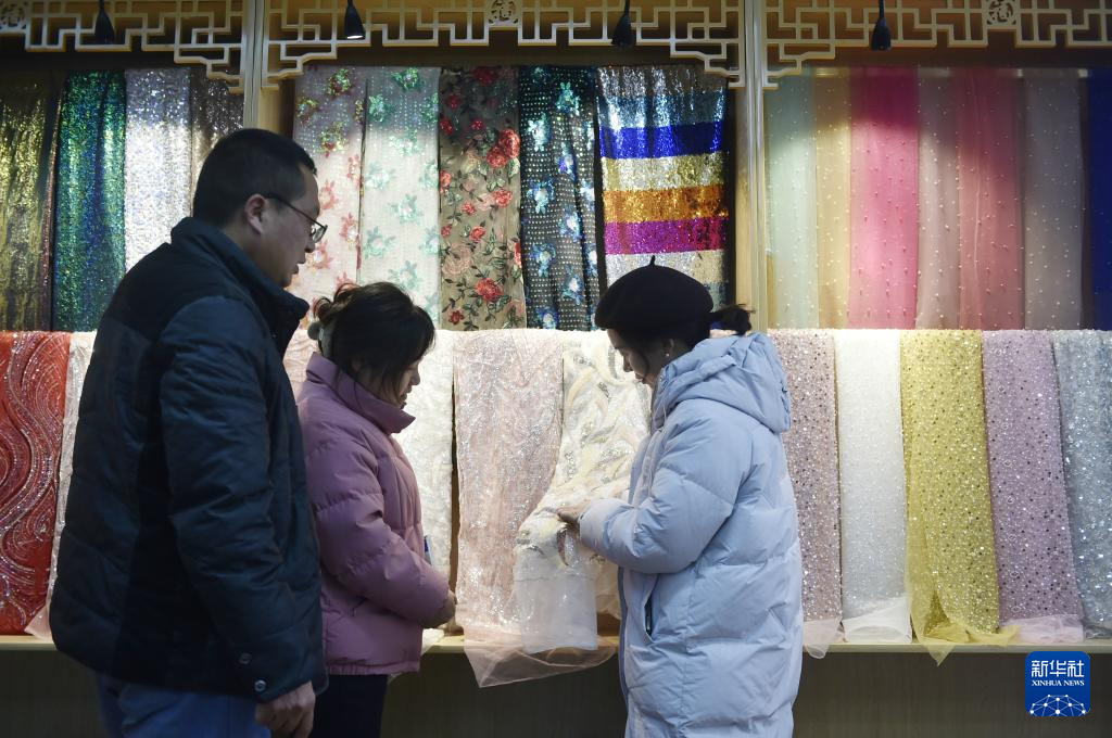 1月9日拍摄的汝州市汝绣产业园一家机绣企业的产品展厅。