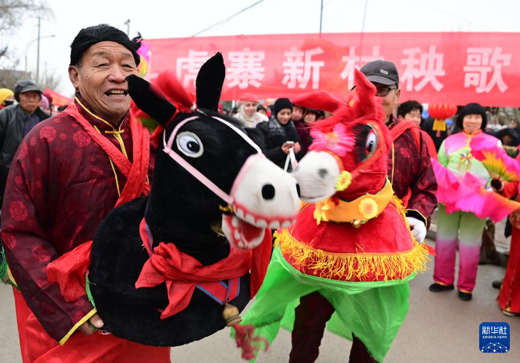 1月18日,山东省聊城市东昌府区堂邑镇民间文艺表演队在表演跑毛驴。