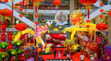 这是1月19日在新加坡牛车水拍摄的农历新年灯饰。新华社发(邓智炜 摄)