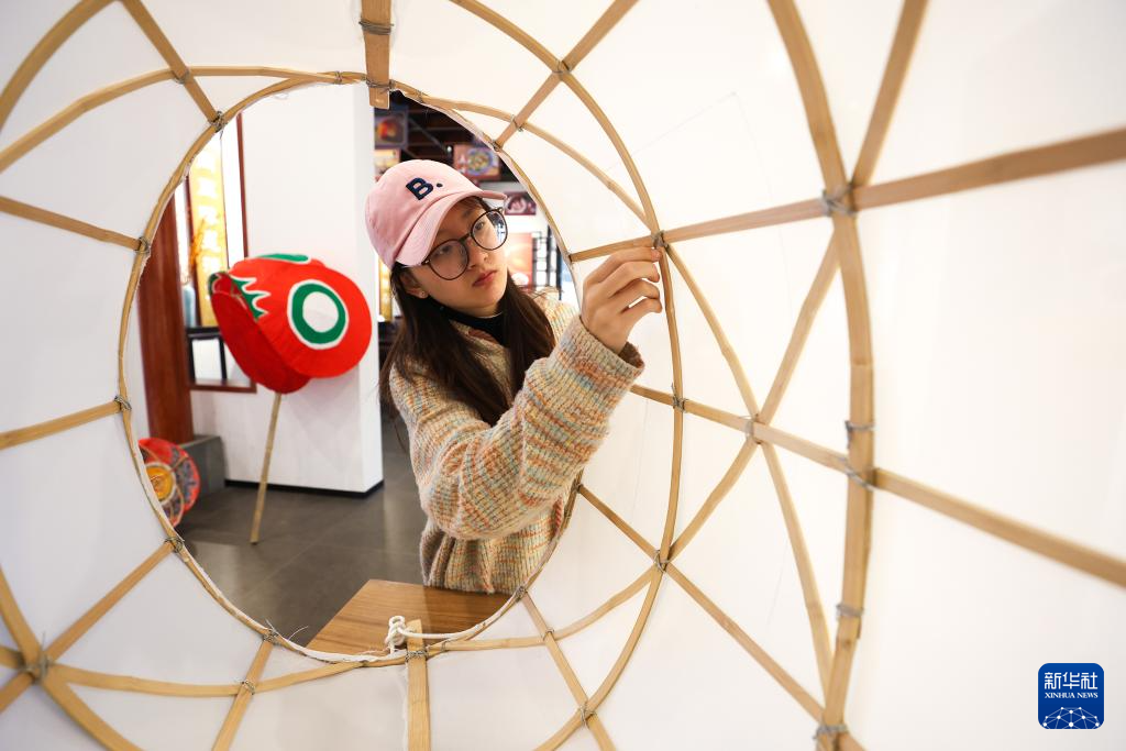 2月6日,黄山市歙县徽州古城鱼灯馆工作人员在制作鱼灯。