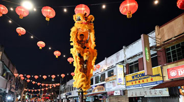 2月21日,演员延翔宇在澳大利亚悉尼“四海同春”访演活动上表演杂技《十面埋伏》。