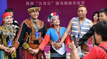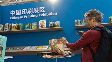 4月12日,人们在法国巴黎临时大皇宫举行的2024巴黎书展上翻阅中国图书。