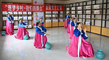 5月6日,一名女士在匈牙利布达佩斯中国文化中心参观摄影展。
