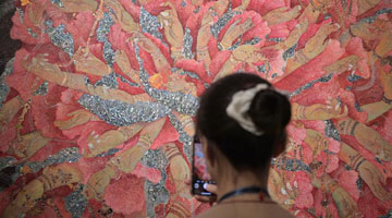 游客在宁夏博物馆观赏文物(5月14日摄)。