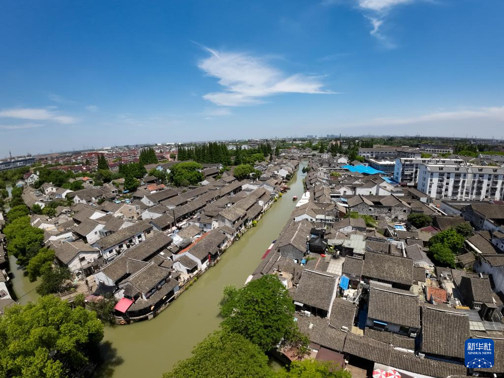 6月18日,空中俯瞰枫泾古镇(无人机照片)。新华社记者 王翔 摄