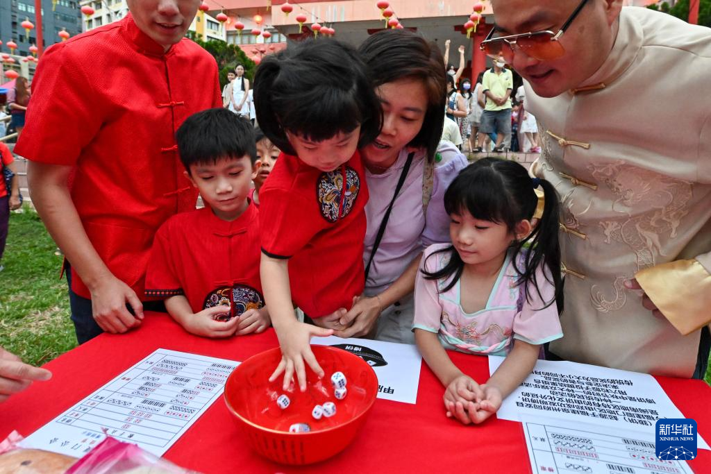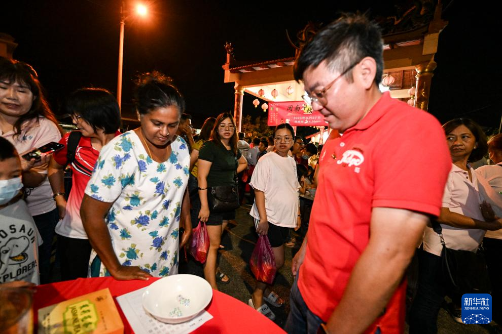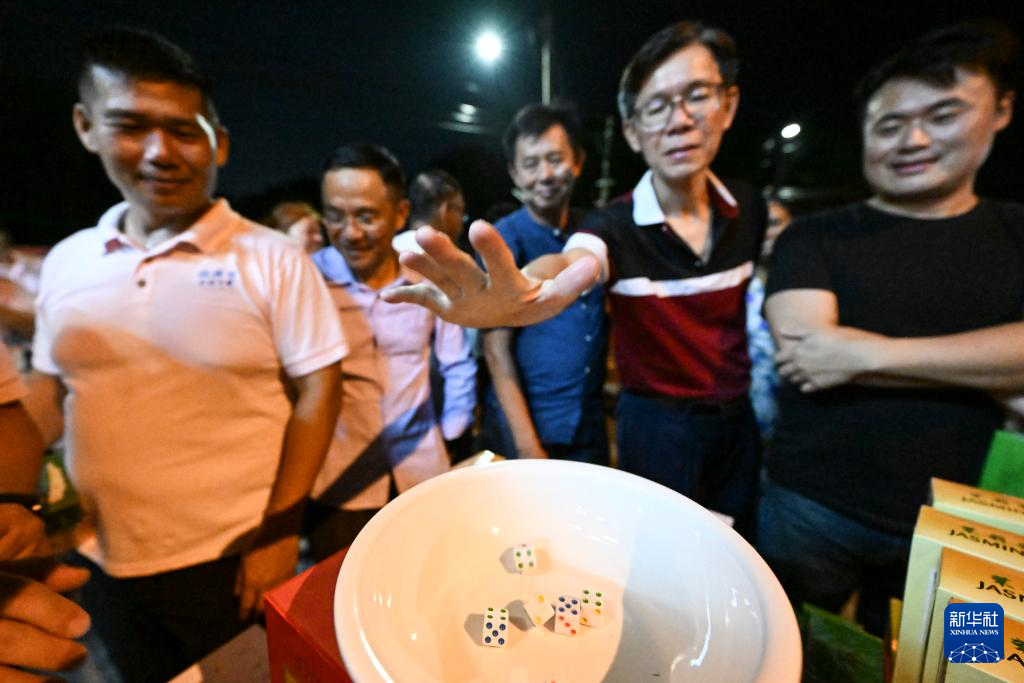 2023年9月27日,在马来西亚马六甲州丹绒吉宁举办的中秋晚会上,人们参加博饼活动(资料照片)。