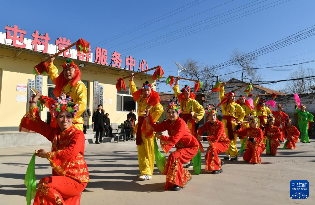 12月22日,艺人在南皮县冯家口镇车官屯村表演沧州落子。
