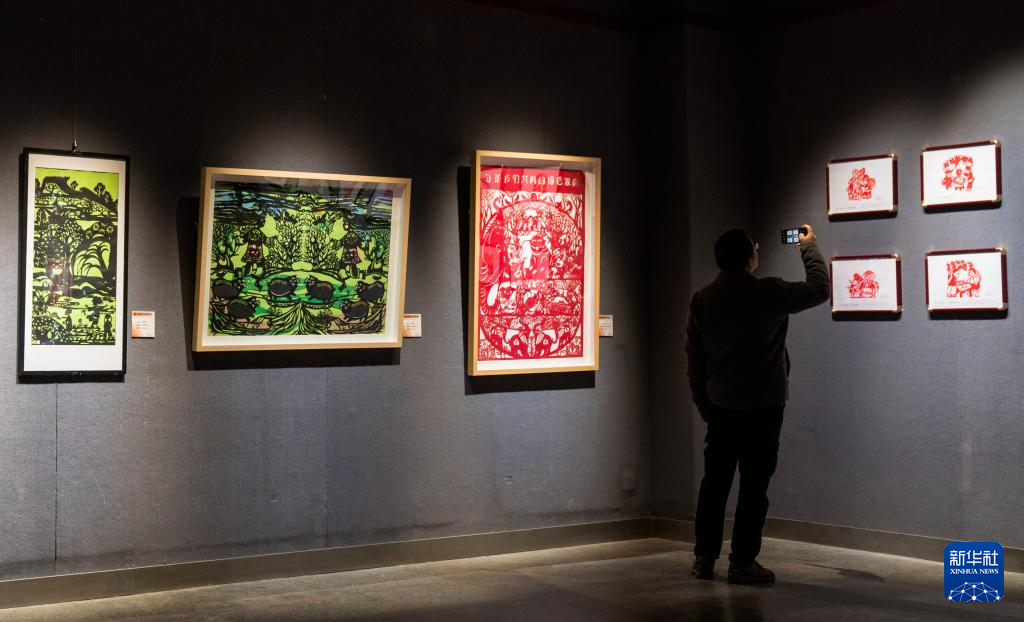 12月26日,游客在昆明市博物馆参观剪纸作品。