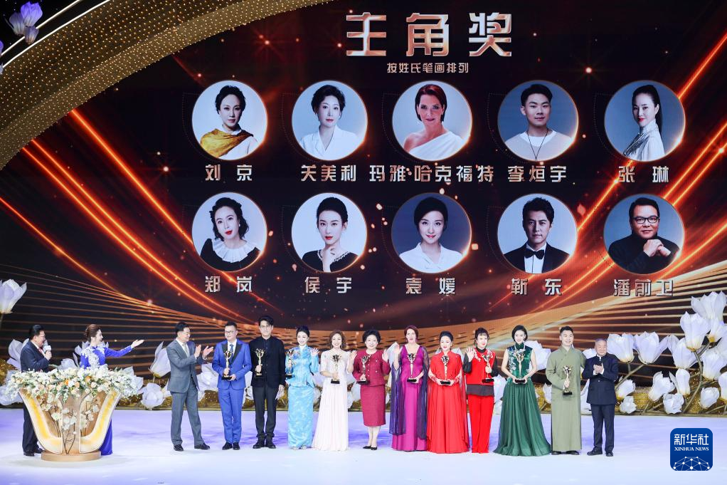 2月27日,表演嘉宾和获奖演员合唱《白玉兰之歌》。