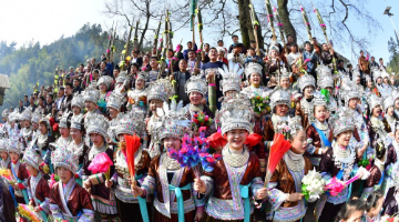 3月25日,在广西柳州市融水苗族自治县杆洞乡中心小学,乡村少年宫的学生在跳芦笙踩堂舞。