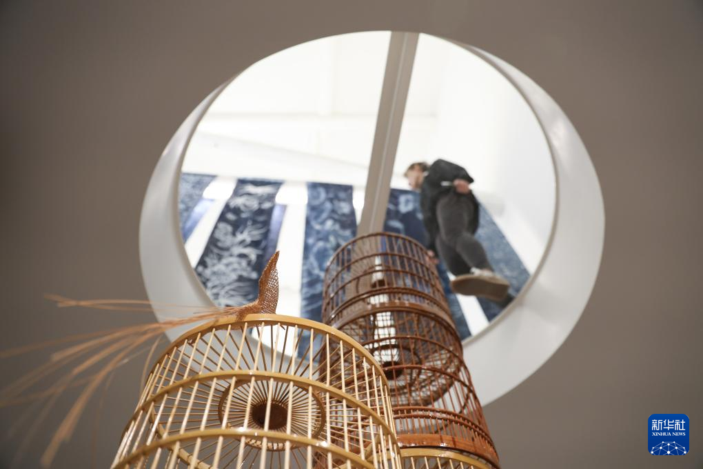 这是4月13日在意大利米兰设计周的贵州工业设计城展区拍摄的竹编展品。