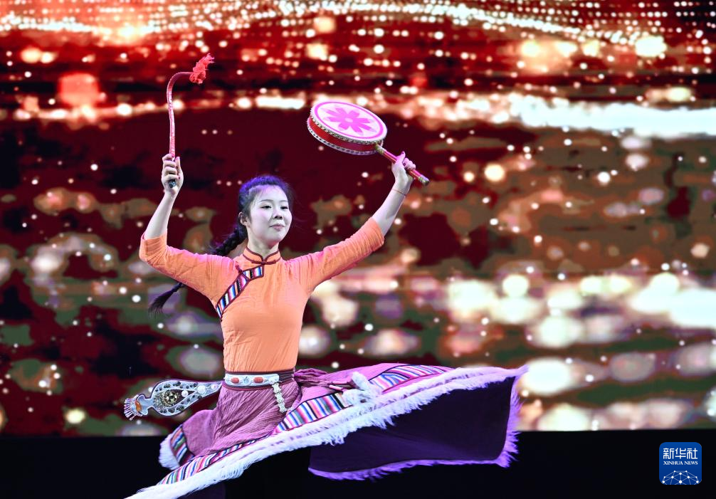 5月28日,在天津市民族文化宫,演员表演舞蹈《华夏欢歌》。