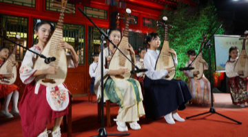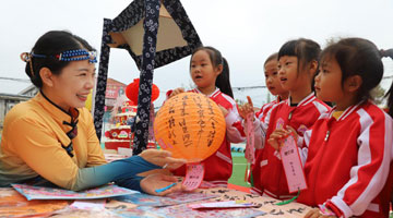 10月7日,身穿剪纸主题时装的模特在海口骑楼老街走秀。