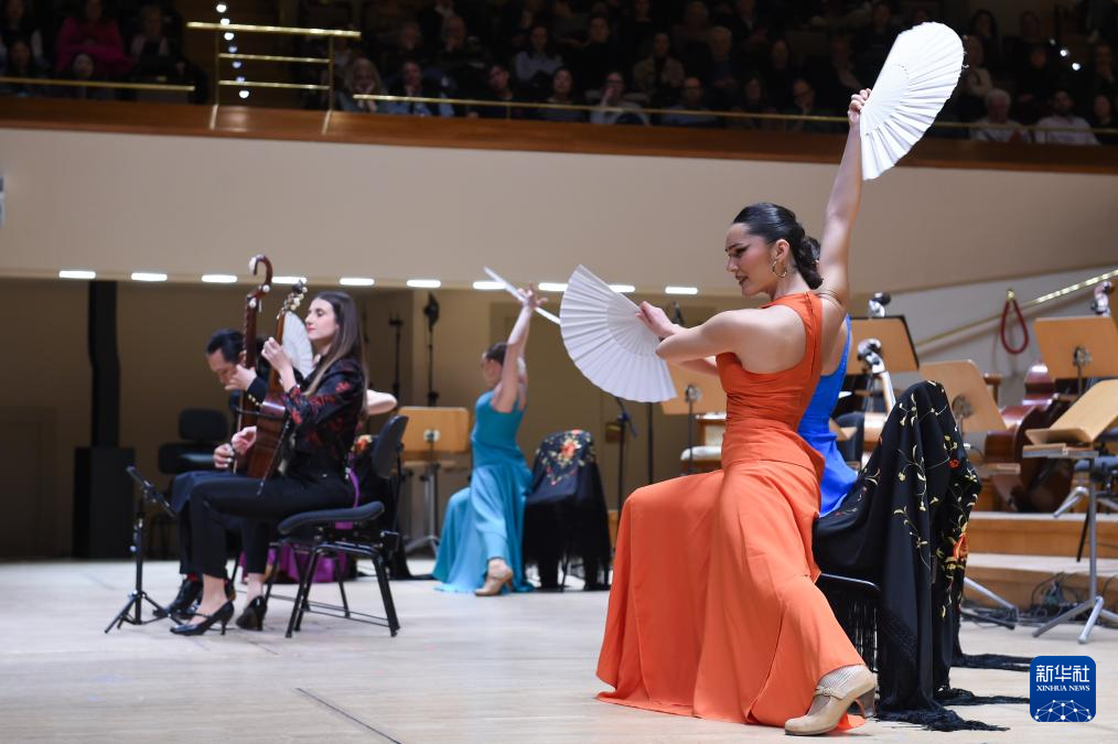 2月8日,艺术家在西班牙马德里国家音乐厅举行的“欢乐春节”音乐会上表演。